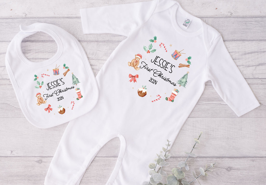 These cute vest and baby gros make the perfect outfit for baby's first Christmas