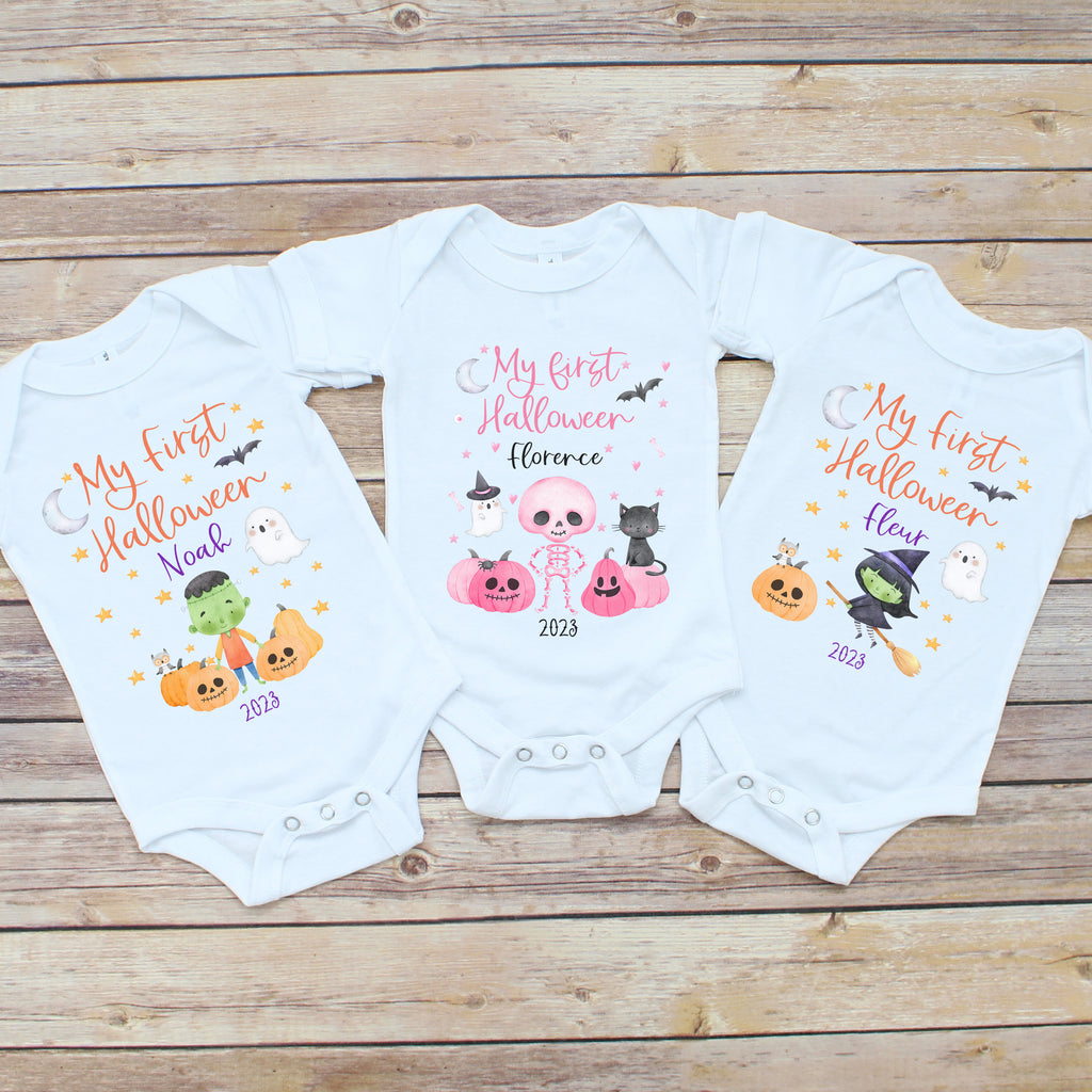 These cute vest and baby gros make the perfect outfit for baby's first halloween.