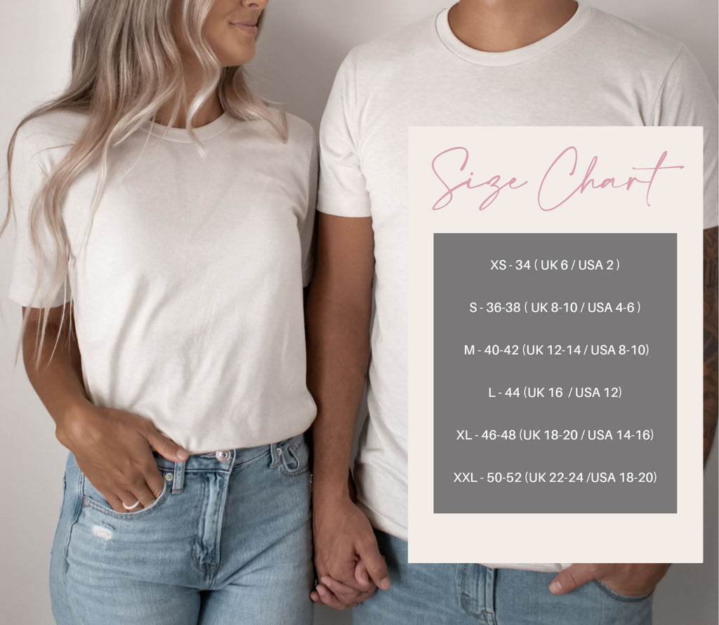 • Our Shirts are unisex sizing, so they have a t-shirt/'boyfriend' fit.