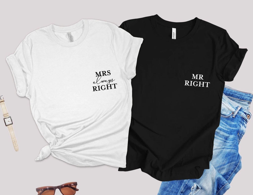 Our 'Mr and Mrs' Tees makes the perfect gift for him or her. The unisex fit has short sleeves and casual crew neck. We like to style ours with rolled up sleeves and a side knot!